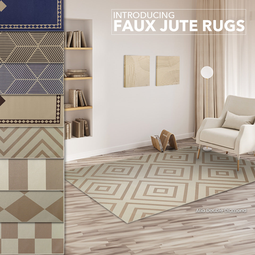 Jute Aria Double-Diamond Natural Dining Room Washable Rug 5'x7'